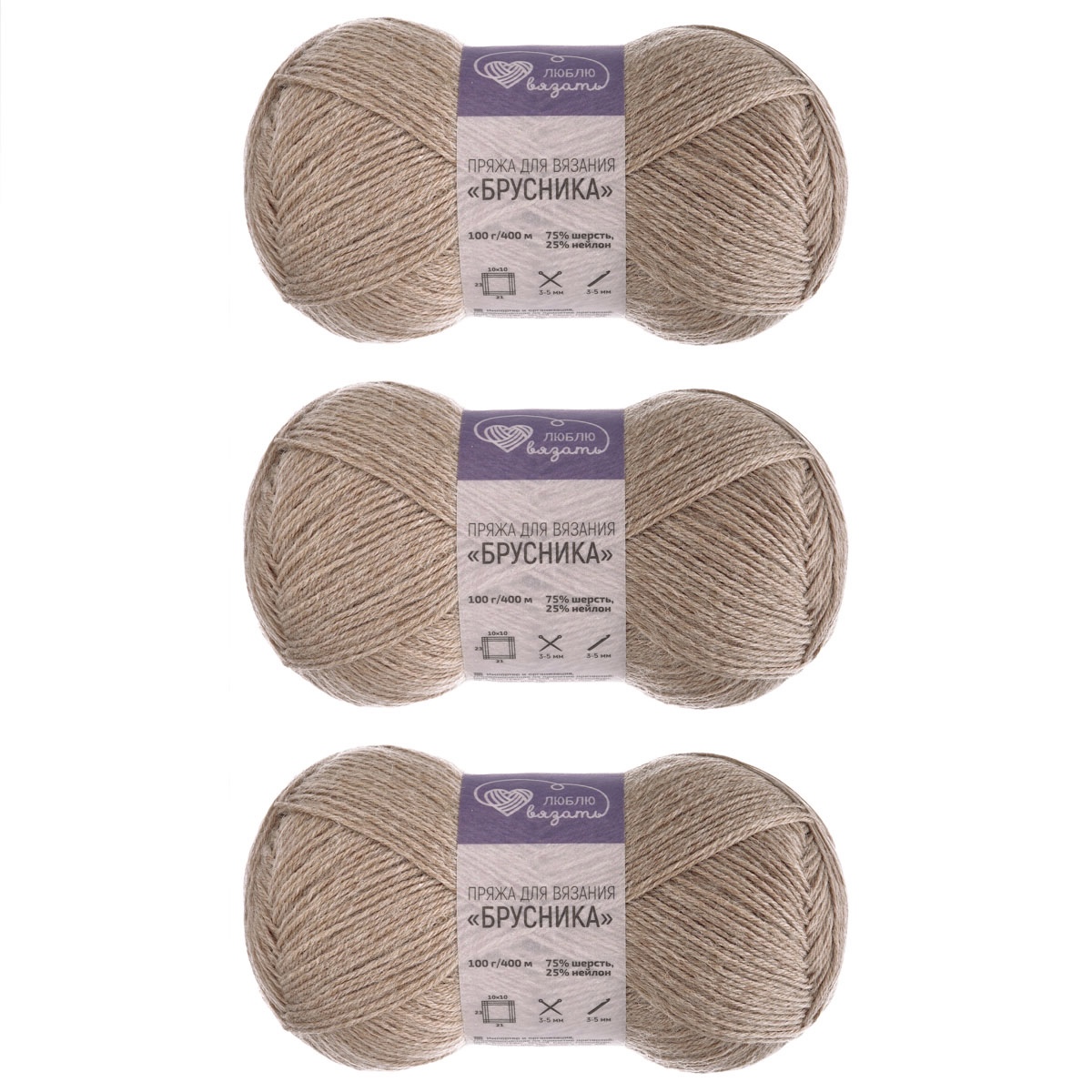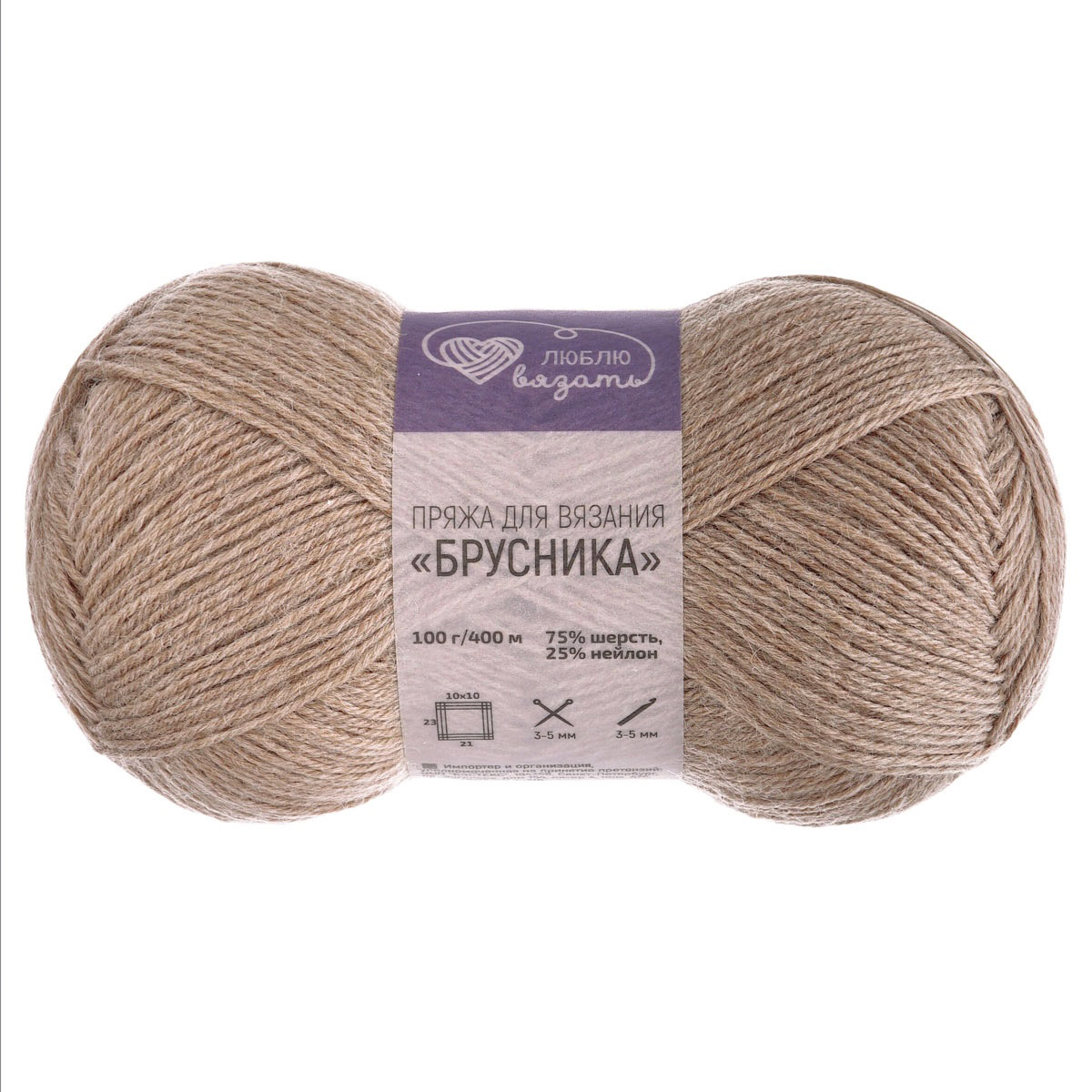 Пряжа Люблю вязать 'Брусника' носочная 100гр 400м (75% шерсть, 25% нейлон) (818 бежевый)