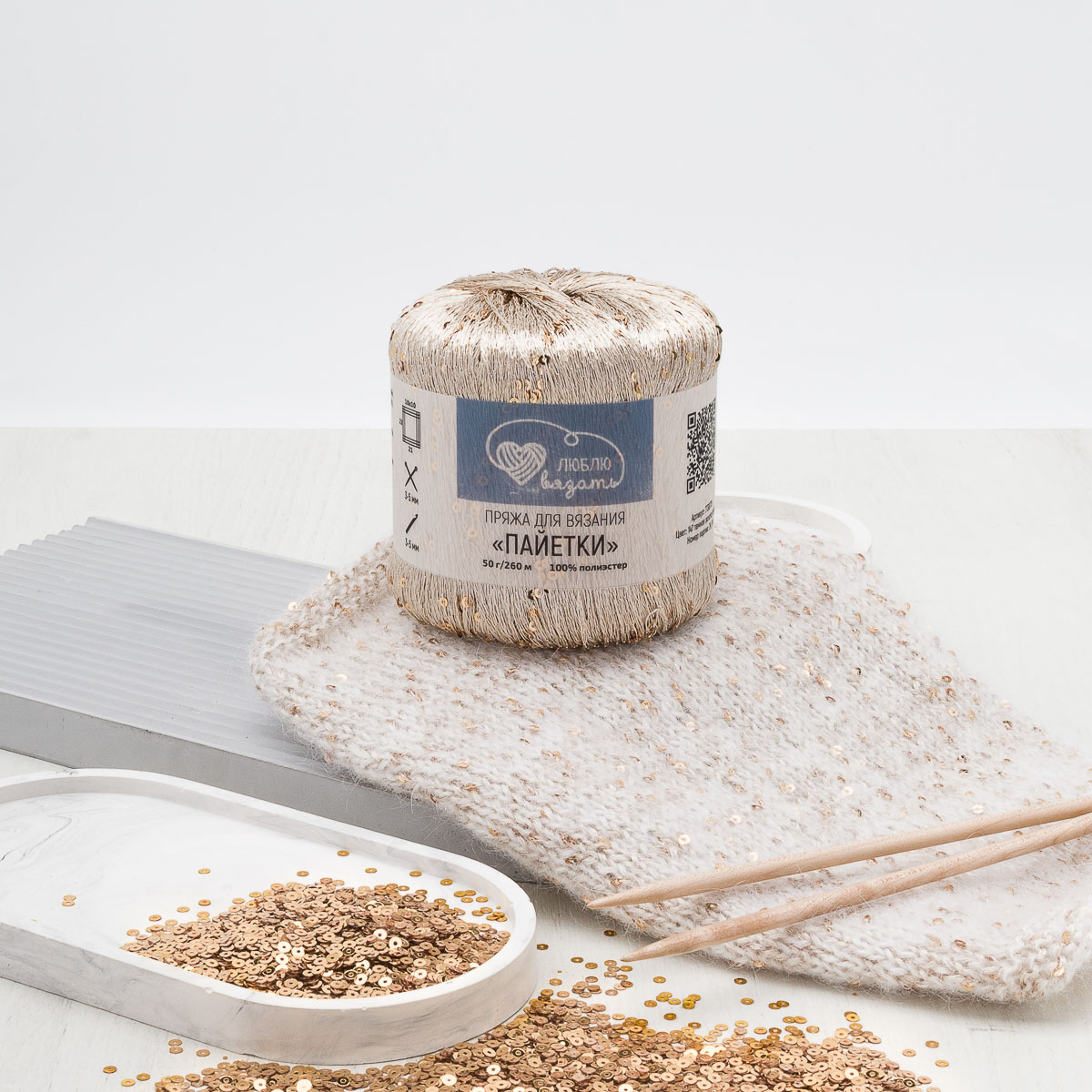 Пряжа Пайетки от Люблю вязать отличается необычайной тонкостью. Это позволяет использовать её в качестве дополнительной нити практически с любым типом пряжи, не нарушая основную фактуру полотна. Она словно нежно подсвечивает изделие изнутри, добавляя ему изысканности и глубины цвета. Экспериментируйте смело! Сочетание пряжи Пайетки с тонким мохером создаст невероятно воздушный и легкий эффект, а в паре с пухом норки – роскошную, теплую и блестящую фактуру. Прекрасно сочетается с хлопком, льняной пряжей, шерстью различной толщины, а также с вискозой и шелком, создавая удивительные переливы и игру света.