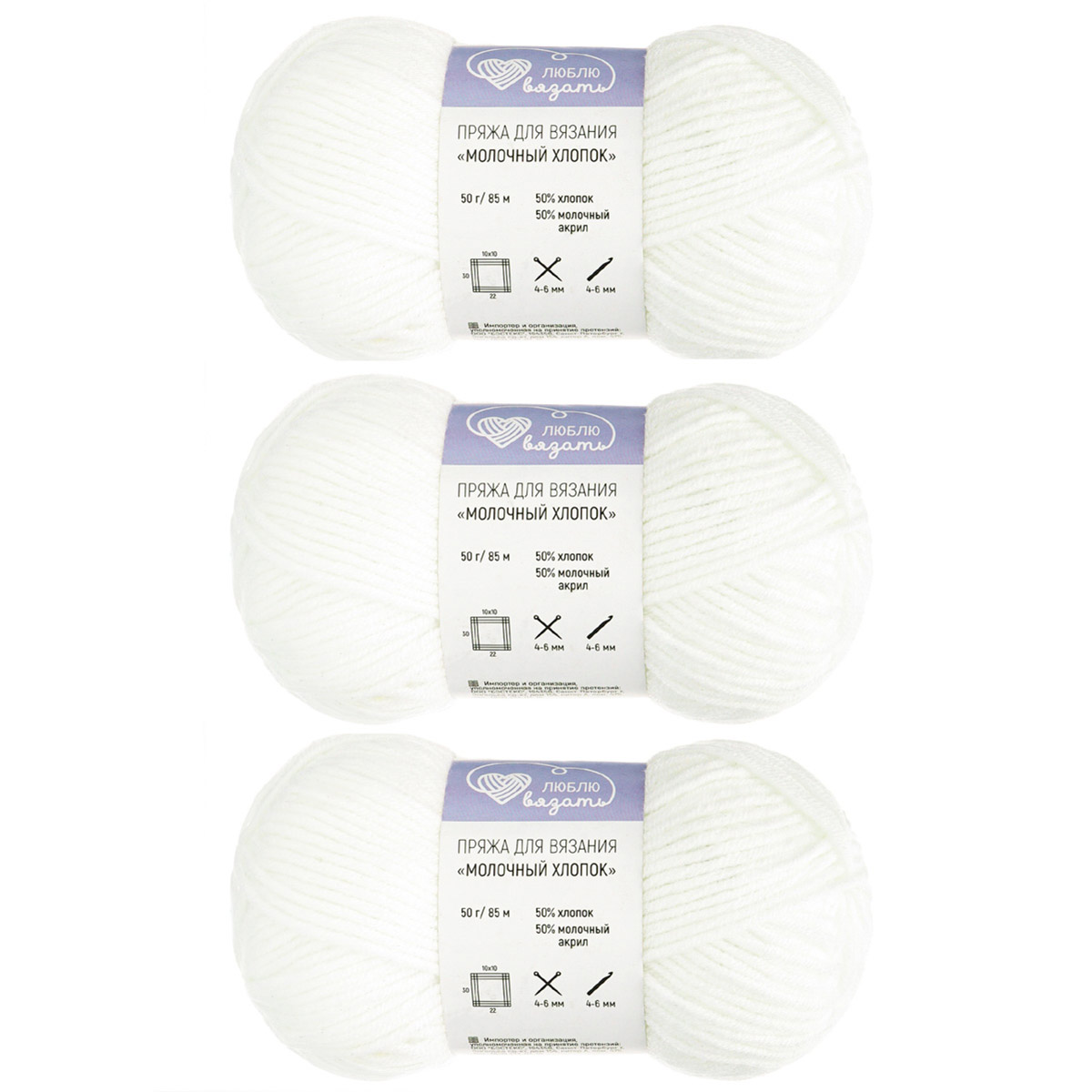 Пряжа Люблю Вязать 'Молочный хлопок' (Milk Cotton) 50г 85м (50% хлопок, 50% молочный акрил) (64 белый)