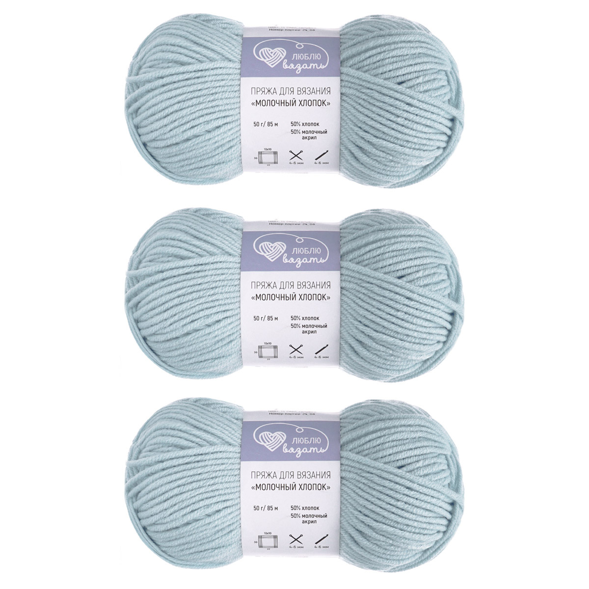 Молочный хлопок Milk Cotton- мягкая всесезонная пряжа от бренда Люблю вязать с уникальным комбинированным составом. На 50% она состоит из молочного акрила - этот материал получают из продуктов молочного производства, обрабатывают и вытягивают в нити. Получается легкое объемное волокно. Универсальная средняя толщина пряжи подходит для любого изделия: шапки, снуда, шарфа, кардигана и жакета, пуловера, носков, рукавиц. Пряжа подходит для вязания изделий для взрослых, безопасная для детей.