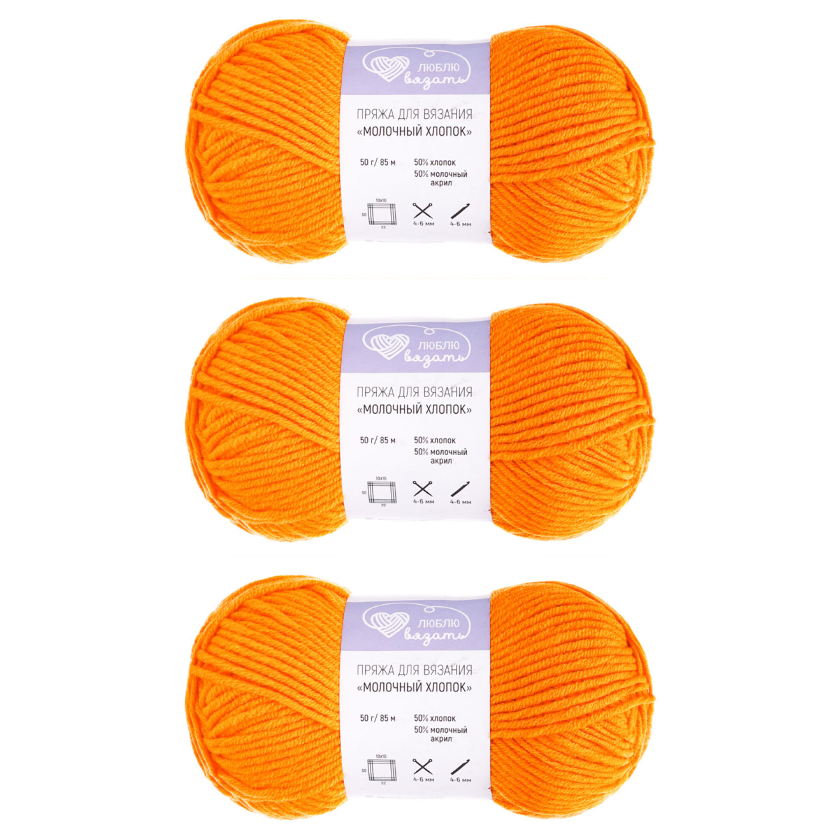 Пряжа Люблю Вязать 'Молочный хлопок' (Milk Cotton) 50г 85м (50% хлопок, 50% молочный акрил) (30 оранжевый)