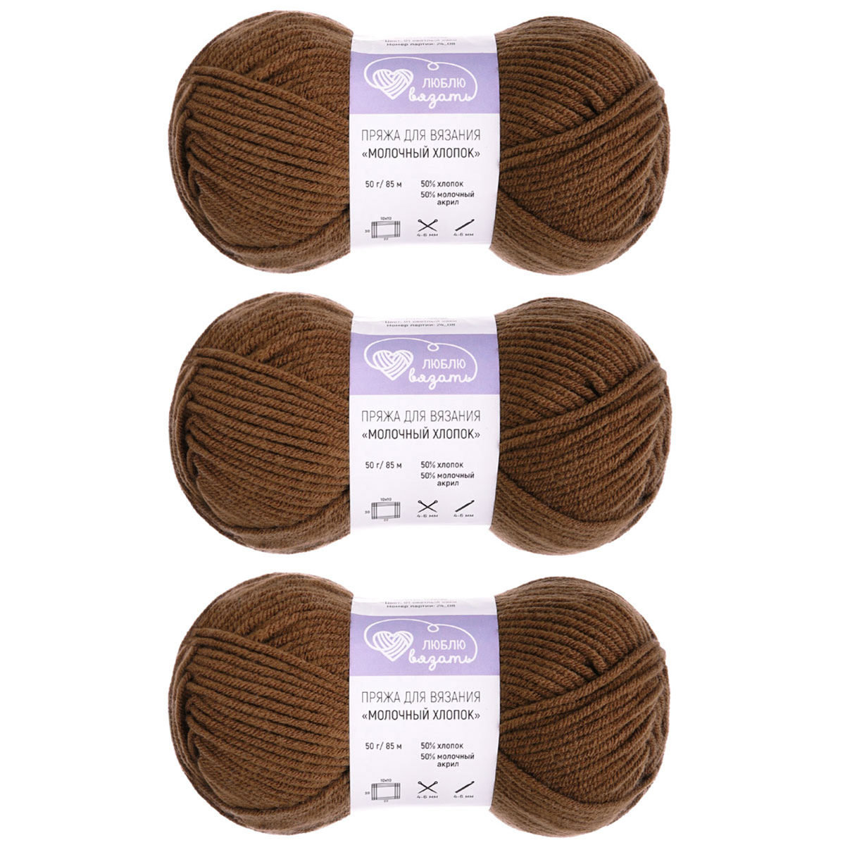 Пряжа Люблю Вязать 'Молочный хлопок' (Milk Cotton) 50г 85м (50% хлопок, 50% молочный акрил) (34 коричневый)