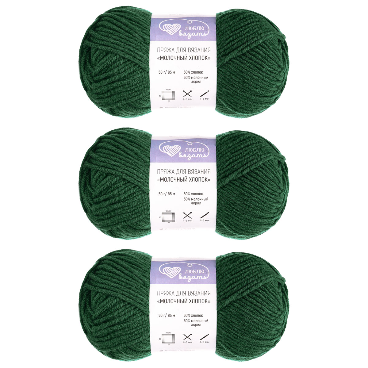 Пряжа Люблю Вязать 'Молочный хлопок' (Milk Cotton) 50г 85м (50% хлопок, 50% молочный акрил) (41 темно-зеленый)