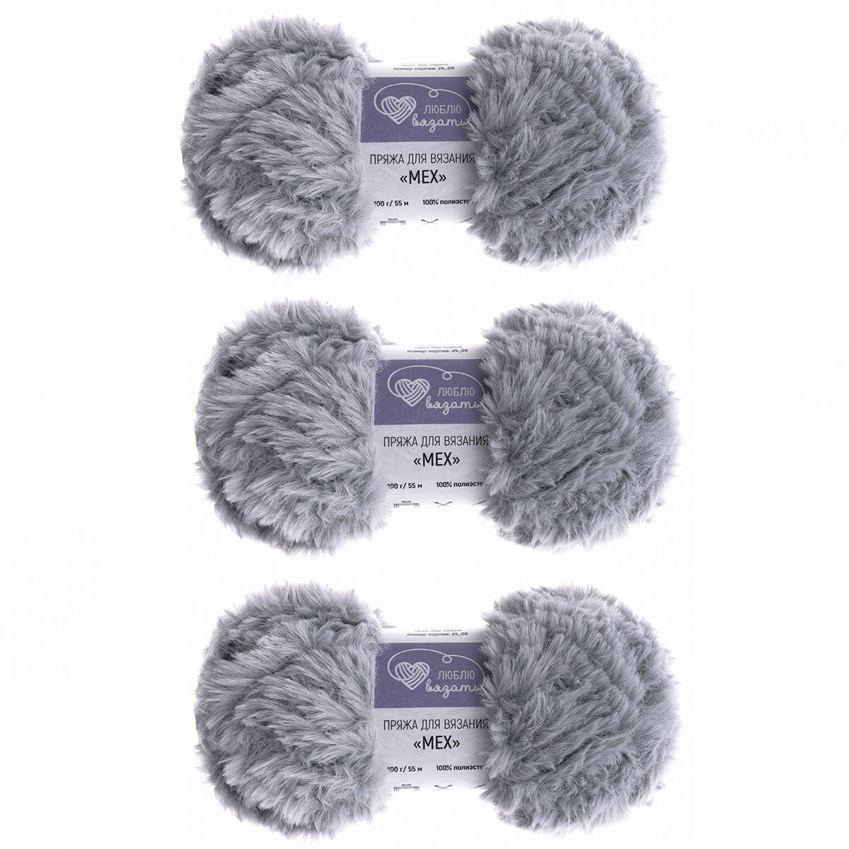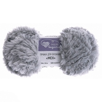 Пряжа Люблю вязать 'Мех' 100г 55м (100% полиэстер) (002 серый)