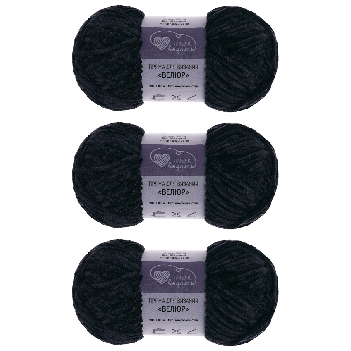 Пряжа Люблю вязать 'Велюр' 100г 120м (100% микрополиэстер) (990 черный)