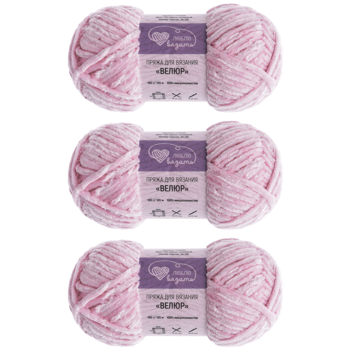 Пряжа Люблю вязать 'Велюр' 100г 120м (100% микрополиэстер) (113 светло-розовый)