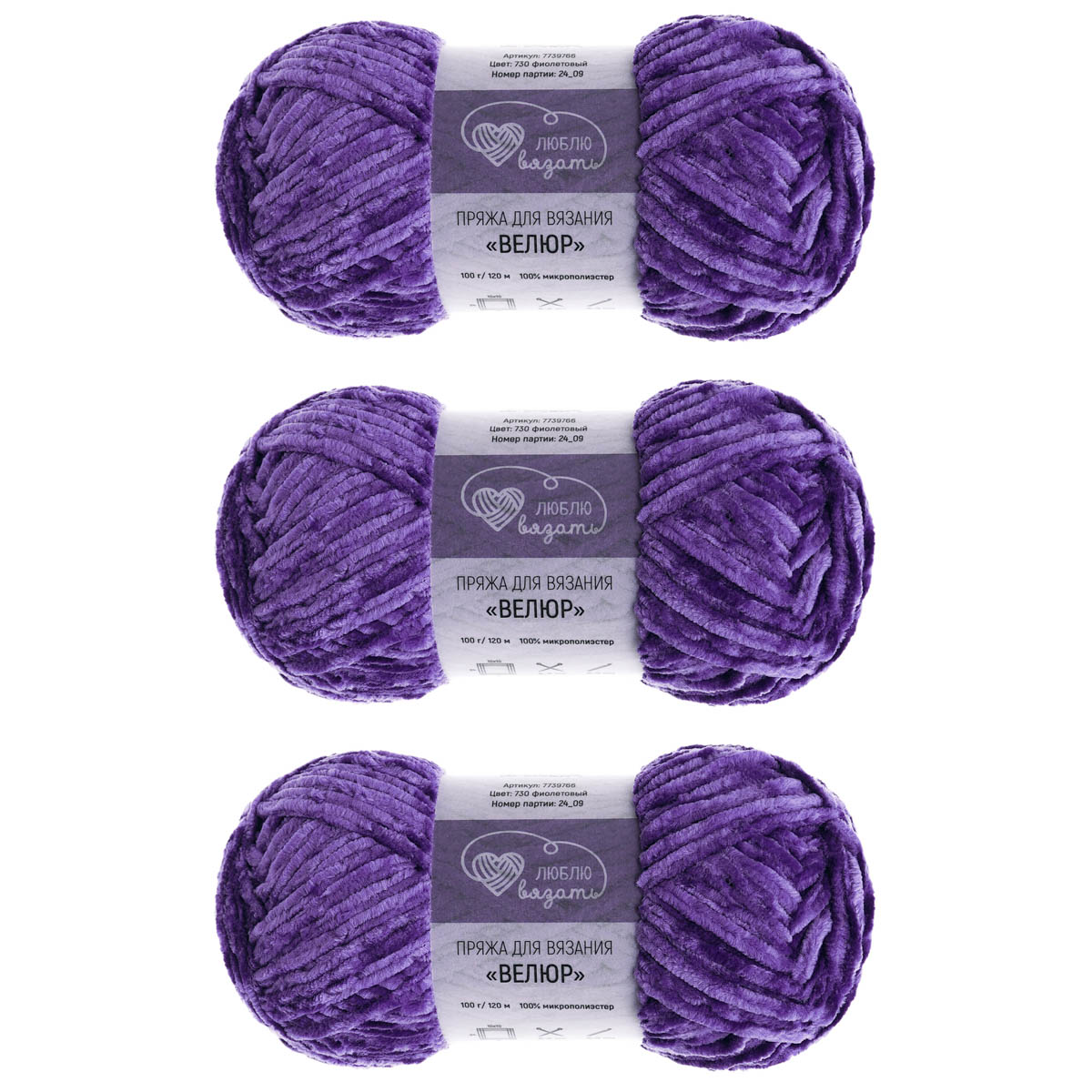 Пряжа Люблю вязать 'Велюр' 100г 120м (100% микрополиэстер) (730 фиолетовый)