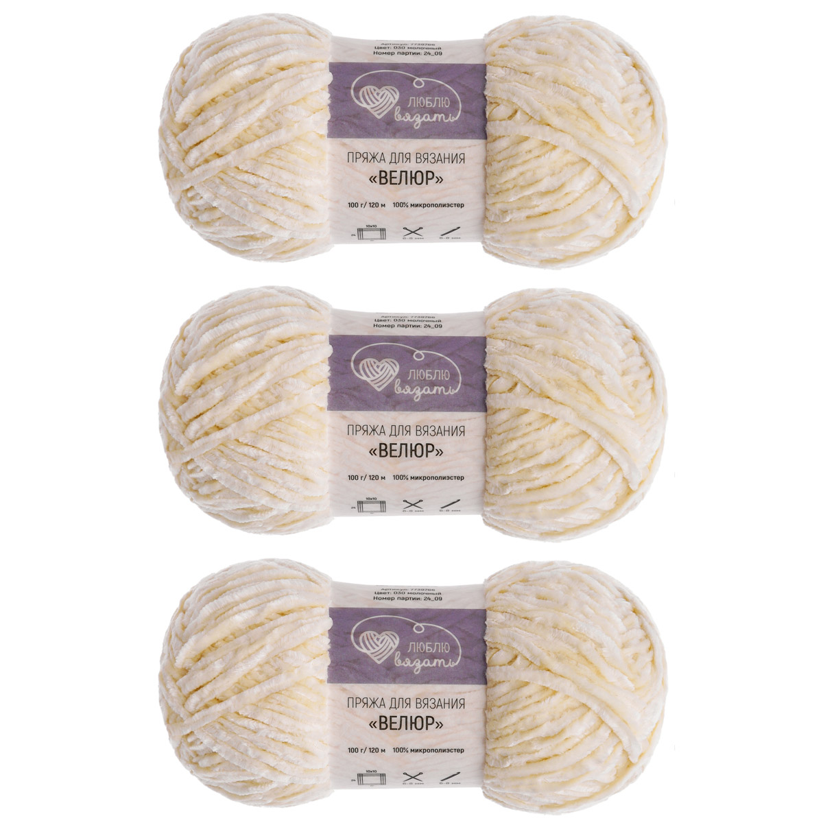 Пряжа Люблю вязать 'Велюр' 100г 120м (100% микрополиэстер) (030 молочный)