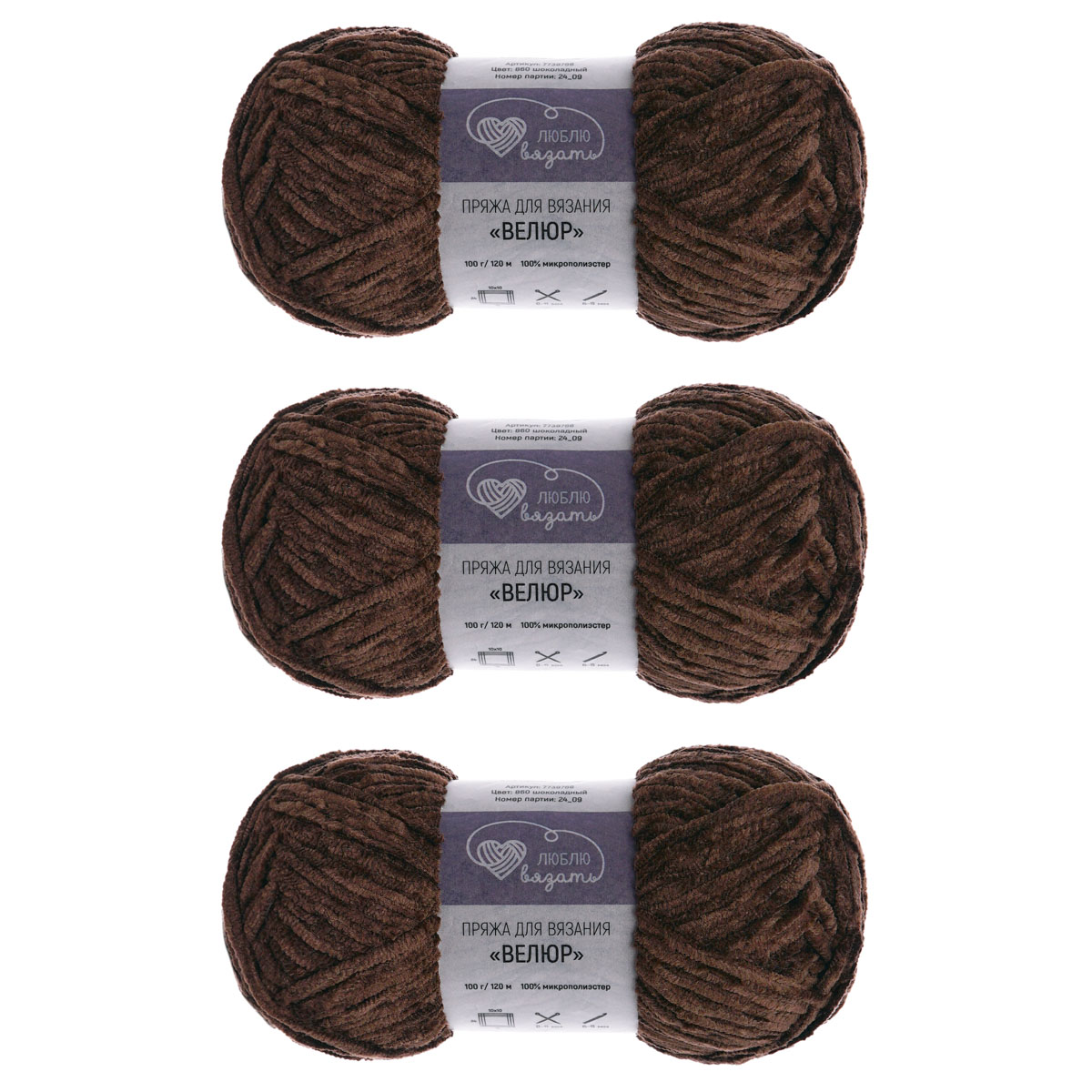 Пряжа Люблю вязать 'Велюр' 100г 120м (100% микрополиэстер) (860 шоколадный)