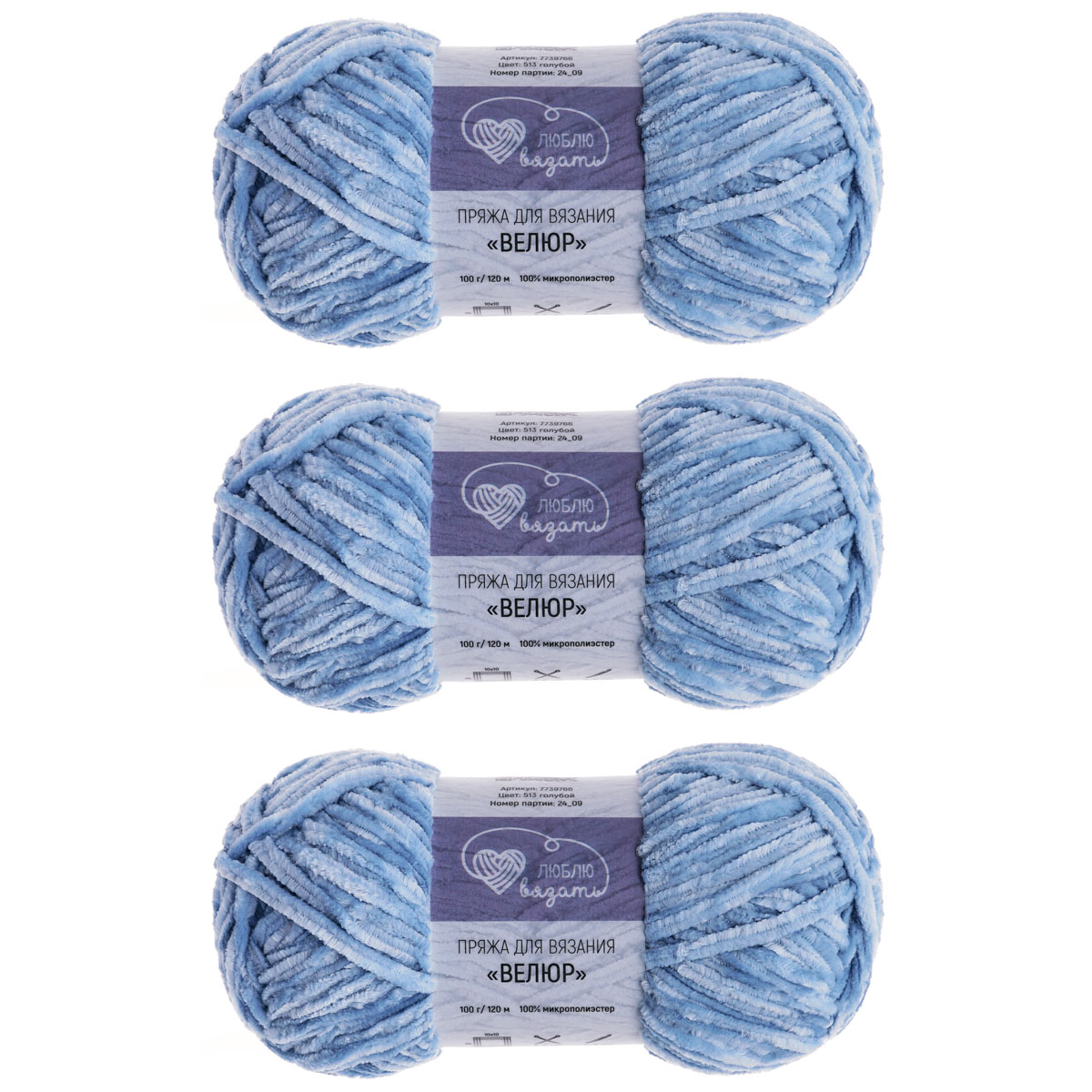 Пряжа Люблю вязать 'Велюр' 100г 120м (100% микрополиэстер) (513 голубой)