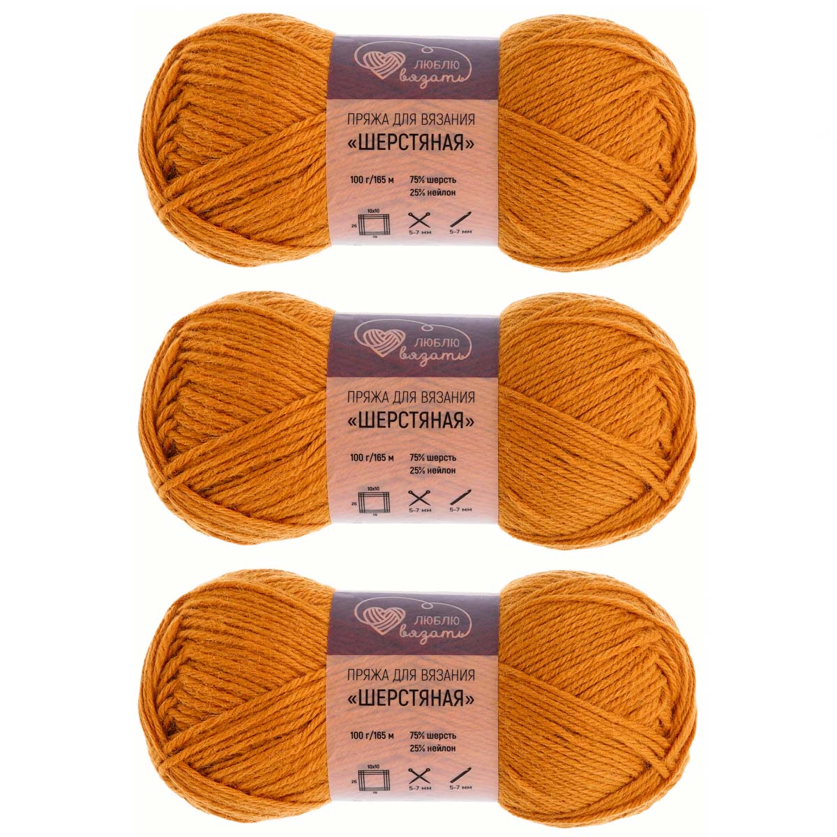 Пряжа Люблю вязать 'Шерстяная' 100гр 165м (75% шерсть, 25% нейлон) (289 охра)