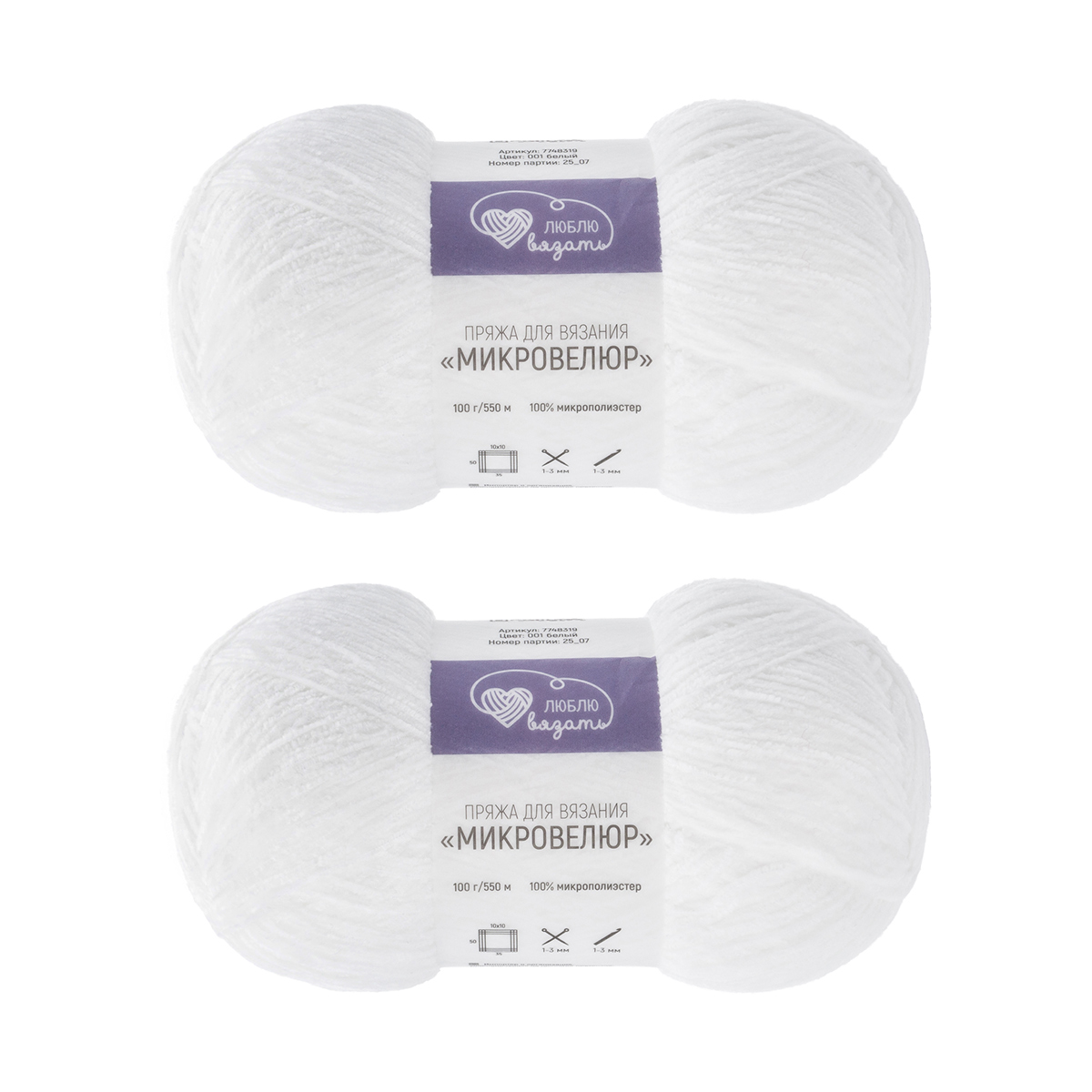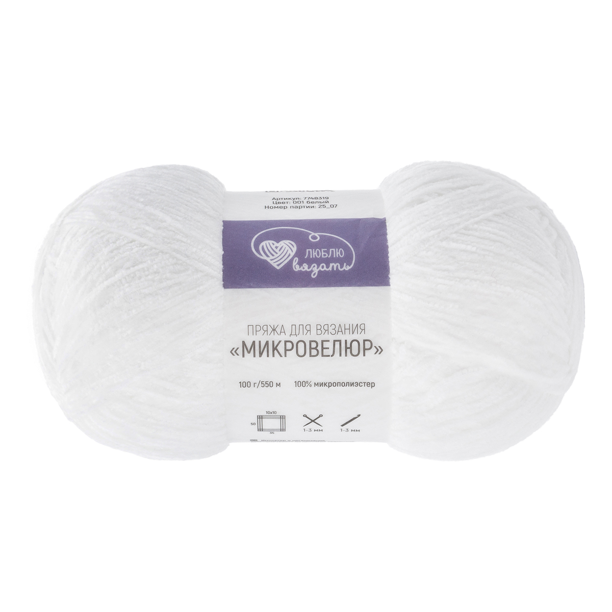 Пряжа Люблю вязать 'Микровелюр' 100г 550м (100% микрополиэстер) (001 белый)