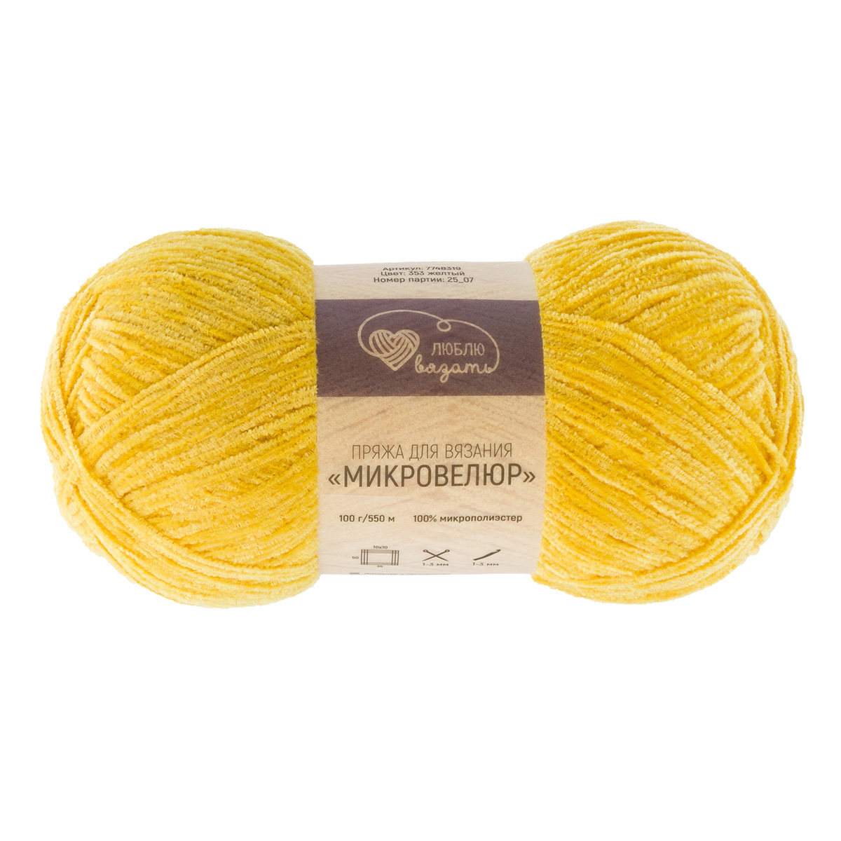 Пряжа Люблю вязать 'Микровелюр' 100г 550м (100% микрополиэстер) (353 желтый)