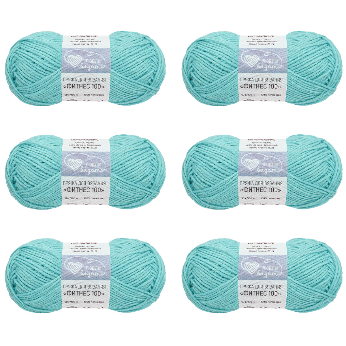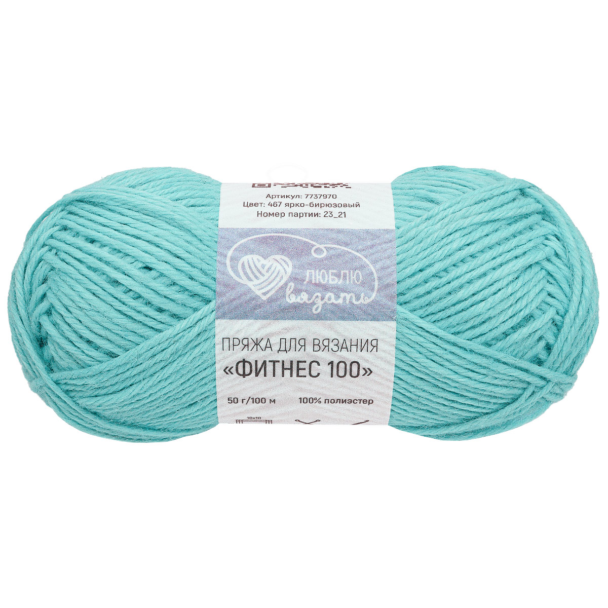 Пряжа Люблю вязать 'Фитнес 100' 50гр 100м (100% Полиэстер) (467 ярко-бирюзовый)