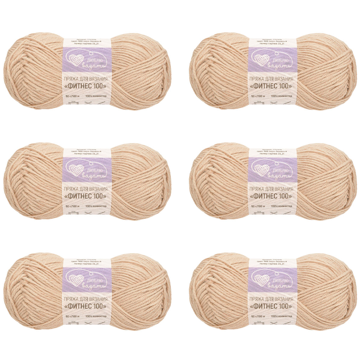 Пряжа Люблю вязать 'Фитнес 100' 50гр 100м (100% Полиэстер) (808 серо-бежевый)