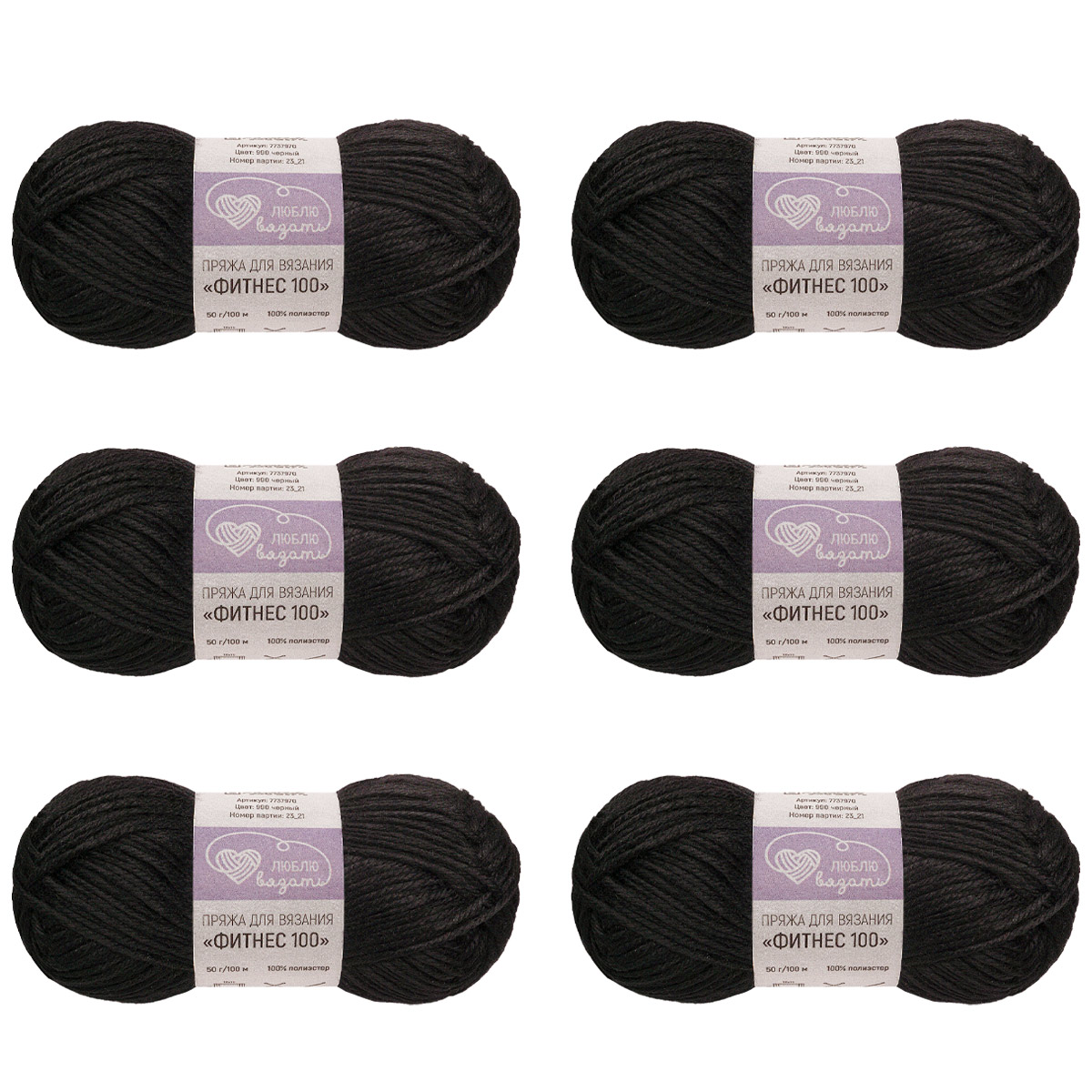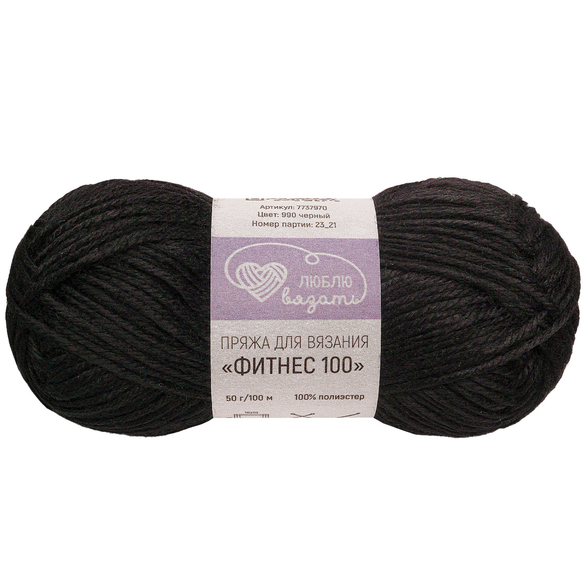 Пряжа Люблю вязать 'Фитнес 100' 50гр 100м (100% Полиэстер) (990 черный)