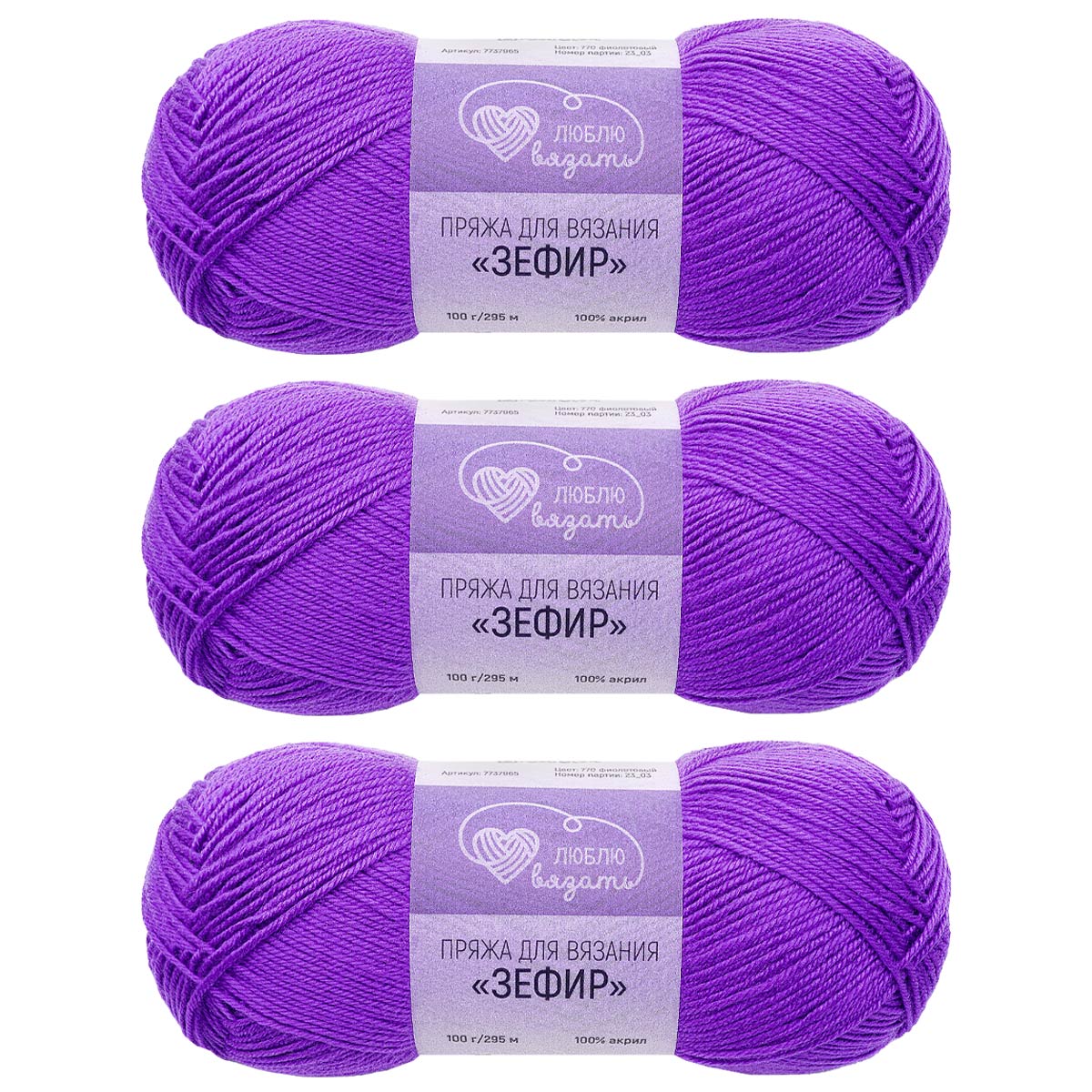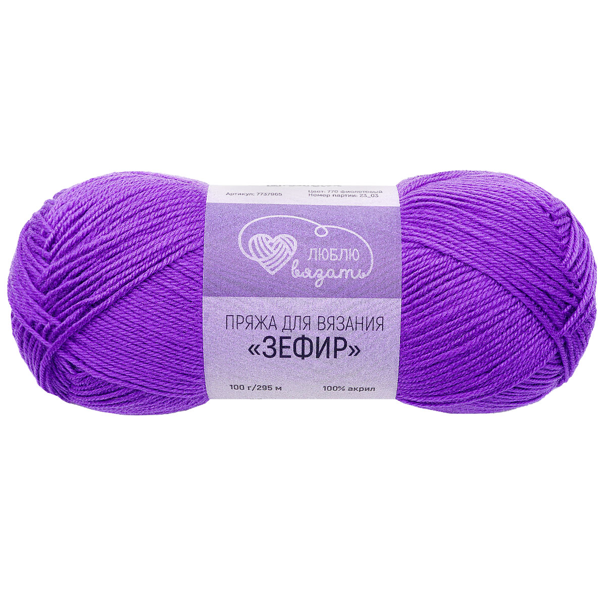 Пряжа Люблю вязать 'Зефир' 100гр 295м (100% акрил) (770 фиолетовый)